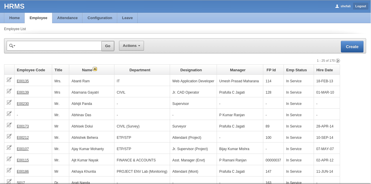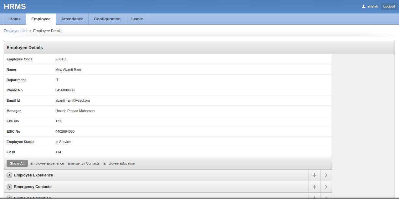 Employee details