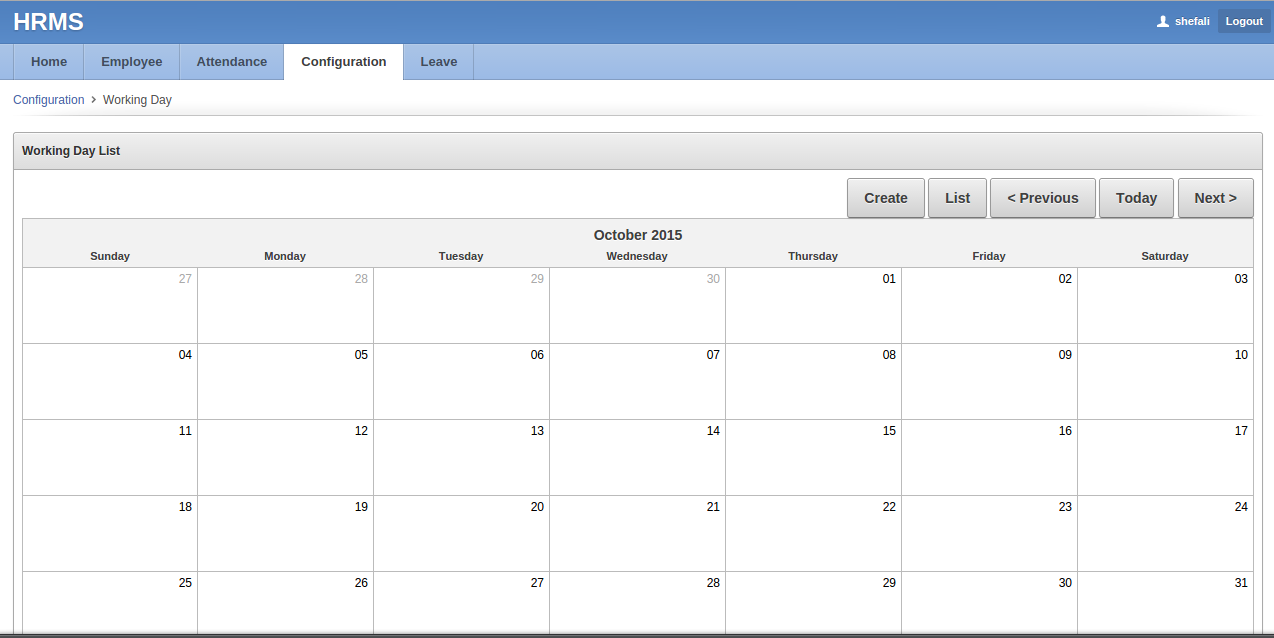 Working day list
