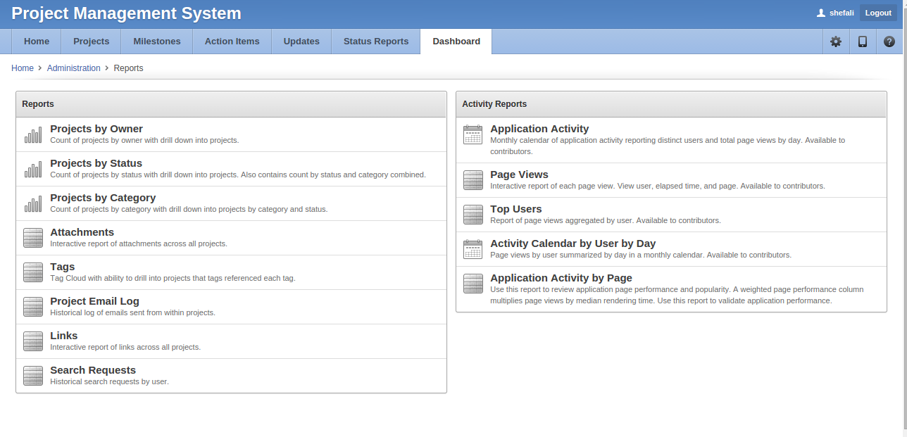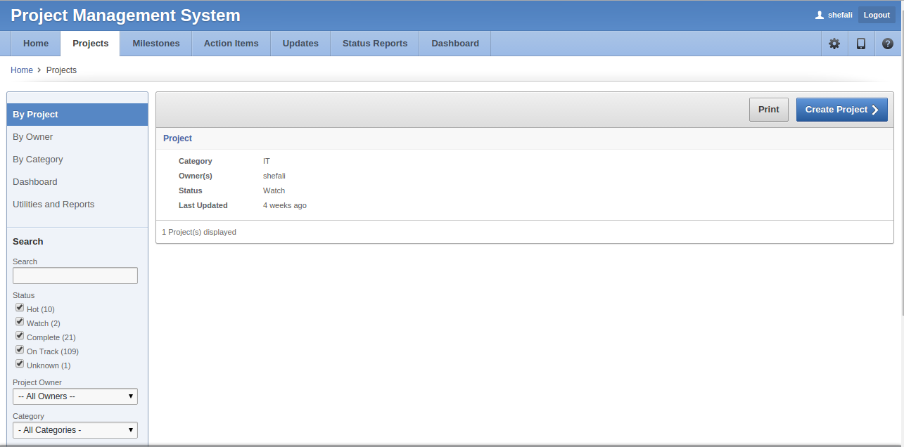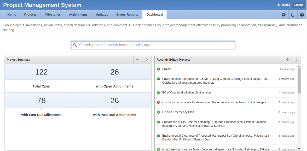 - View lists of problem areas/risks identified for the projects .